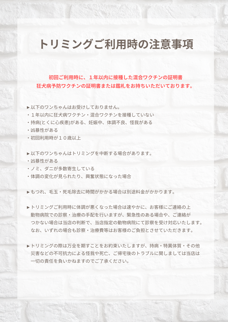 当店のトリミングのご利用が1年以上ないお客様が対象です。
